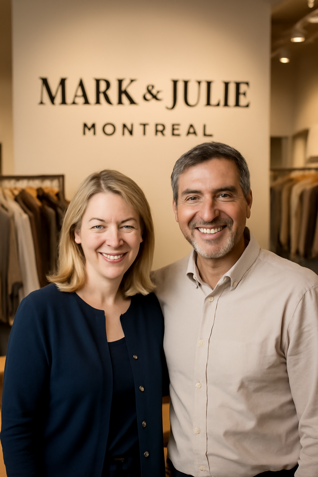 At Mark & Julie Montreal, everything starts with passion for fashion. From a young age, Mark and Julie shared a lifelong love for style and creativity. Both studied Fashion Design and Business before building their careers in the industry. After working for different companies, they came together as a couple and decided to create something of their own.